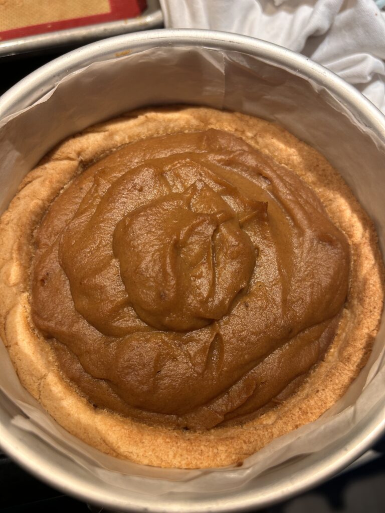 Once your pumpkin is cool to touch, scrape the flesh from the skin and put it into a high speed blender or food processor. This is easiest if your pumpkin isn’t totally cold, but isn’t too hot either. Add your soaked dates (discard the water), espresso, brown sugar, and pumpkin pie spice, and blend until totally smooth- this can take 2-3 minutes or longer depending on your blender. Once smooth, add your corn starch and blend until just combined. If you add it too early or blend too long it will get gummy.